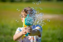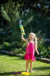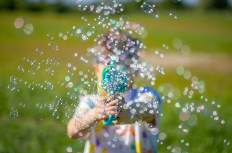 Die Mehrfach-Düse erzeugt einen dichten Strom feiner Bläschen, der den Raum im Handumdrehen mit Spaß füllt – ideal für den Garten und Kinderpartys.