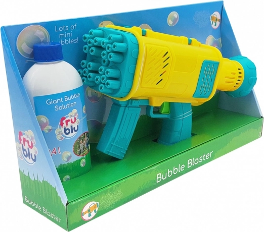 Im Lieferumfang sind Blaster, flache Schale und 0,4 l hochwertige Seifenblasenlösung enthalten. Einfach eintauchen und lospusten.