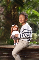 Die Outfits werden aus Bio-Baumwolle, Wolle und recycelten Materialien genäht. Das garantiert eine angenehme Haptik, Robustheit und einen nachhaltigen Ansatz. Die Puppe enthält keine Sound- oder Elektronikfunktionen – so fördert sie natürliche Kreativität und die kindliche Vorstellungskraft.