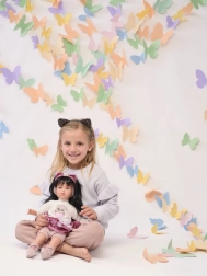 Greta überzeugt mit schönen Wimpern, Augen und einer feinen Schattierung des Gesichts, die der Puppe ein lebendiges und natürliches Aussehen verleiht.