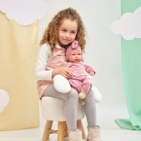 Diese handgefertigte Puppe begeistert mit sanfter Mimik, hübschen Wimpern sowie detailreich geformten Händen und Füßen aus Vinyl. Der Stoffbauch ist angenehm zum Kuscheln und beim Druck auf den Bauch gibt die Puppe ein Weingeräusch von sich, das Rollenspiele und die Entwicklung von Empathie fördert.