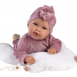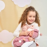 Ein niedliches Baby mit einer Größe von 42 cm, zarten Gesichtszügen und einem kuschelweichen Stoffkörper erfreut jede kleine Pflegeperson. Die handgefertigte Puppe aus der LLORENS-Manufaktur bietet realistische Details, hochwertige Materialien und weint, wenn man auf den Bauch drückt. Im Set enthalten sind stylische Outfits, ein Kissen und ein Schnuller mit Clip für noch realistischeres Pflege-Spiel.