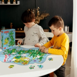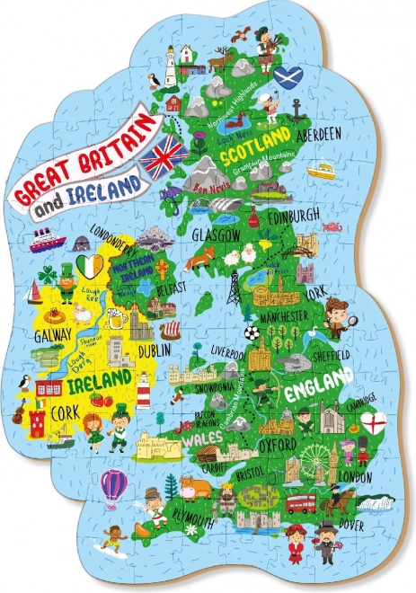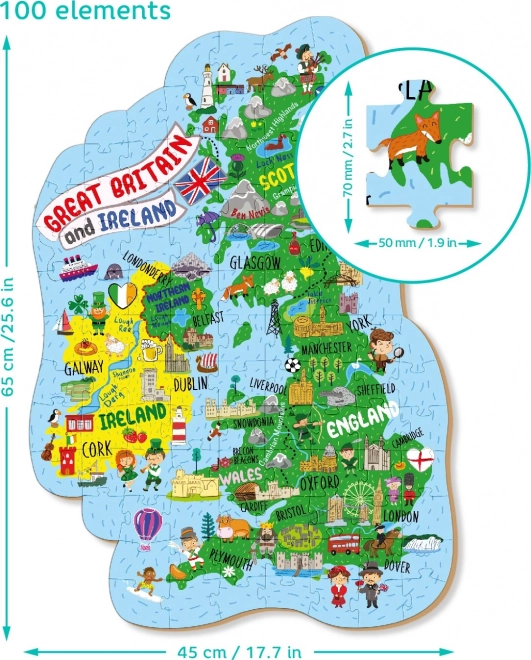 Lernen Sie spielerisch mit der Puzzlekarte von Großbritannien und Nordirland der Marke DODO. Dank der Beschriftungen in englischer Sprache üben Kinder und Erwachsene ihren Wortschatz und lernen gleichzeitig, Hauptstädte, Regionen und Sehenswürdigkeiten zu erkennen. Die Größe des fertigen Puzzles von ca. 65 × 45 cm bietet genügend Details und eine klare Orientierung.