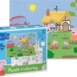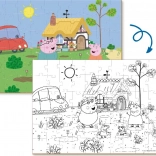 Dieses beidseitige Puzzle bietet Kindern doppelt so viel Spaß. Zuerst wird das fröhliche Motiv mit Figuren aus der beliebten Serie Peppa Wutz zusammengesetzt, anschließend kann die Rückseite nach dem Puzzeln nach eigener Fantasie ausgemalt werden.