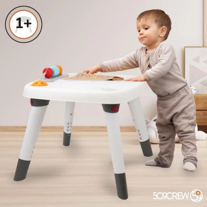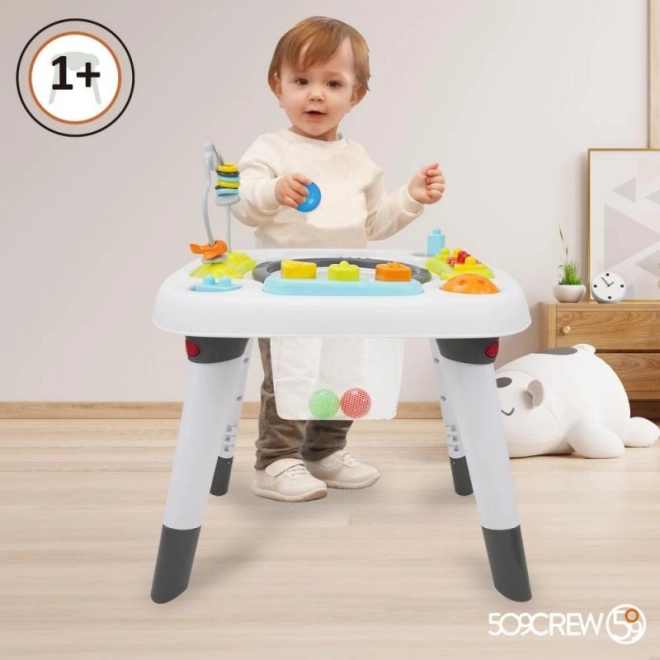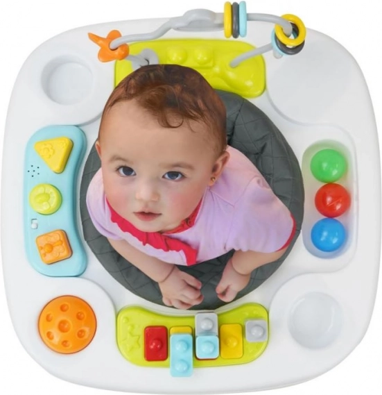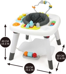 Der Interaktive Kinderspieltisch 3in1 ist mehr als nur ein Spielzeug. In der ersten Phase kann das Kind die Welt um sich herum vom Komfort eines Sitzes aus mit leicht erreichbaren Spielzeugen erkunden. Die zweite Phase bringt Spaß beim Lernen zu gehen und mit interaktiven und bunten Spielzeugen, die rund um den Tisch angeordnet sind, zu kommunizieren. Die dritte und letzte Phase verwandelt den Tisch in ein funktionales Möbelstück, das zum Spielen, Essen oder zu anderen kreativen Aktivitäten verwendet werden kann.