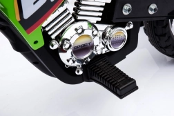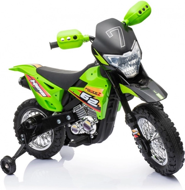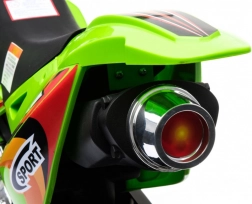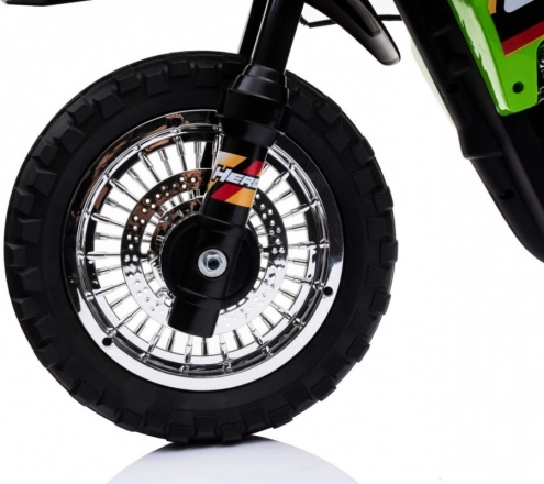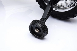 Das elektrische Kinder-Motorrad im Cross-Stil ist ideal für die ersten Fahrten auf zwei Rädern. Die einfache Bedienung dank Gasgriff und Vorwärtsmodus stärkt das Vertrauen, während abnehmbare Stützräder auf jedem Untergrund für Stabilität sorgen. Vordere LED-Lichter und ein Panel mit Geräuschen und Melodien sorgen für eine Extraportion Spaß und Realismus.