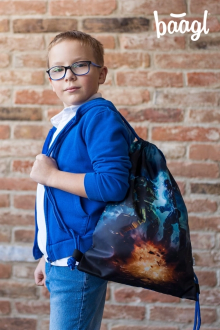 Stylischer Beutel mit dynamischem Robotermotiv, der Kinder und Teenager gleichermaßen begeistert. Dank des robusten, leicht abwischbaren Materials hält er dem täglichen Einsatz in der Schule, bei Freizeitkursen und beim Sport stand. Die praktischen Kordeln ermöglichen ein bequemes Tragen auf dem Rücken wie ein kleiner Rucksack.