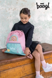 Der stylische rosa Beutel BAAGL mit Regenbogenmotiv ist ideal für Hausschuhe, Sportausrüstung und Freizeitgegenstände. Dank des strapazierfähigen, leicht abwischbaren Materials hält er dem schulischen Alltag stand und bewahrt Ihre Sachen sicher und trocken auf.
