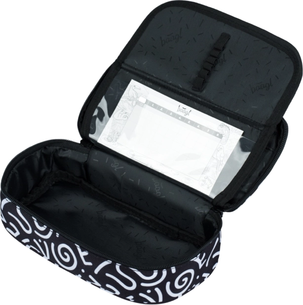 Das Etui-Federmäppchen mit aufklappbarer Trennwand, kleiner Reißverschlusstasche und Platz für den Stundenplan hält Kleinteile ordentlich zusammen. Der Beutel mit robusten Kordeln ist widerstandsfähig und abwaschbar – bereit für AGs und Sportunterricht.