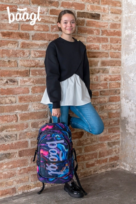 Das Schulset Baagl Core Marble vereint Funktionalität und markantes Marmor-Design. Der ergonomische Rucksack mit drei Fächern fasst alles von Schulbüchern bis zum 15"-Notebook, das Federmäppchen mit aufklappbarer Trennwand sorgt für Ordnung im Schulbedarf und der robuste Beutel mit Kordelzug ist bereit für Schuhe und Freizeitaktivitäten.