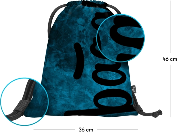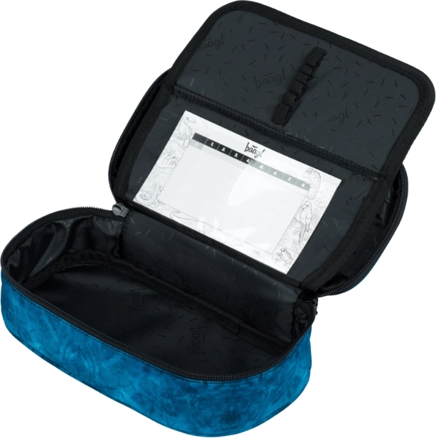Stabiles Federmäppchen mit ausklappbarer Trennwand, Reißverschlusstasche und Platz für den Stundenplan (ohne Inhalt) sowie waschbarer Beutel mit Kordelzug zum Tragen auf dem Rücken – für Schuhe und Sportausrüstung.