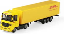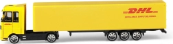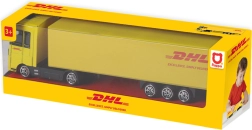 Dieser Lkw ist detailreich gestaltet, um ein echtes DHL-Zustellfahrzeug möglichst originalgetreu nachzubilden – inklusive der markanten gelben Farbe und des Logos.