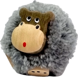 Der Körper des Nilpferds besteht aus einem weichen Baumwoll-Pompon in neutralem Grau, der zum Anfassen einlädt und der Deko Verspieltheit verleiht.