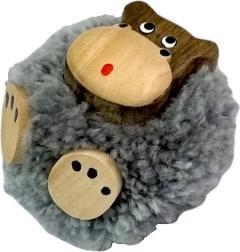 Dieser originelle Magnet mit Nilpferd-Motiv wird handgefertigt und von Hand ausgemalt. Den Körper ziert ein weicher Baumwoll-Pompon, während Gesicht und Details aus natürlich unterschiedlich gefärbten exotischen Hölzern entstehen – Brotfruchtbaum (gelb), Tamarinde (hellbraun), Kassie (dunkelbraun), Aniba (rosa) und Gmelina arborea (weiß). Das Holz wird nicht gefärbt; die Farbtöne entstehen allein durch die Holzstruktur.