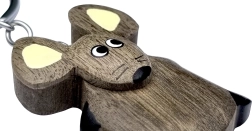 Ein stilvoller Schlüsselanhänger aus Holz in Mausform besticht durch seine natürliche Optik und sorgfältige Handarbeit. Ein robuster und funktionaler Anhänger für Schlüssel, Handtasche oder Rucksack, der dank des Metallrings zuverlässig hält. Die Kombination von bis zu fünf Holzarten mit natürlicher Farbgebung macht jedes Stück zu einem einzigartigen Accessoire und einem liebevollen universellen Geschenk für Natur- und Tierliebhaber.