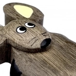 Dieser Holz-Schlüsselanhänger in Mausform wird in Handarbeit aus sorgfältig ausgewählten Hölzern mit natürlicher Farbgebung gefertigt – ganz ohne zusätzliche Färbung. Jedes Stück ist ein Unikat, dezent von Hand nachgemalt, um Details hervorzuheben. Der praktische Metallring gewährleistet eine einfache und sichere Befestigung der Schlüssel.