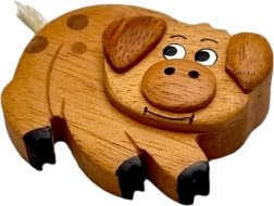 Dieser hochwertige Holzmagnet in Schweinchenform wird mit Liebe zum Detail und solidem Handwerk gefertigt. Die Kombination verschiedenfarbiger, teils exotischer Hölzer betont die natürliche Maserung des Materials – ohne flächige Färbung, lediglich mit handgemalten Details für einen verspielten Ausdruck.