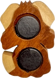 Dieser große Holzmagnet mit Hund-und-Knochen-Motiv verbindet solides Handwerk mit natürlichen Materialien. Jedes Stück wird sorgfältig aus verschiedenfarbigen Hölzern zusammengesetzt und nur von Hand nachgemalt – ohne flächige Bemalung, damit die natürliche Holzmaserung zur Geltung kommt.