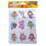 Diamantmalerei ist eine beliebte DIY-Aktivität, die Kindern spielerisch Konzentration und Genauigkeit vermittelt. Es wird nach der beigefügten Vorlage mit Legende (Buchstaben/Ziffern) gearbeitet: Entsprechend der Kennzeichnung werden die farbigen Steinchen mithilfe von Stift und Wachs aufgeklebt. Das Ergebnis sind funkelnde Aufkleber mit Feenmotiven, die Schulutensilien und das Kinderzimmer wunderbar schmücken.