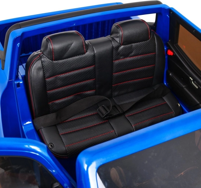 Große EVA‑Räder 30 × 12 cm sind leise und langlebig, die Türen sind öffnend mit Verriegelung und die hintere Ladefläche besitzt eine klappbare Bordwand (57 × 27 cm) – ideal zum Transport von Spielzeug. Innen begeistern ein Sitz aus schwarzem Eco‑Leder mit Sicherheitsgurten, realistischer Start mit Motorsound, MP4-Panel, USB und Ladezustandsanzeige.