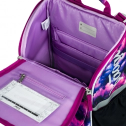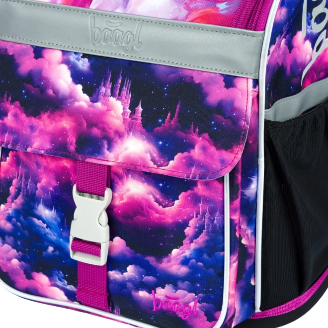 Das stylische Motiv Einhorn Königreich in Rosa- und Violetttönen begeistert Kinder. Reflektierende Elemente erhöhen die Sicherheit und die stabile Konstruktion hält die Form über den ganzen Schultag.