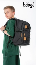BAAGL Skate Darkness ist ein durchdachter Schulrucksack für den täglichen Weg zur Schule, für Freizeitaktivitäten und Stadtausflüge. Dank drei separaten Fächern mit Innen-Organizer und einem gepolsterten Fach verstauen Sie Bücher, Hefte und ein 15"-Notebook oder Tablet sicher. Seitliche stabile Taschen sind ideal für Trinkflaschen, die vorderen Riemen halten problemlos ein Skateboard.