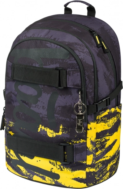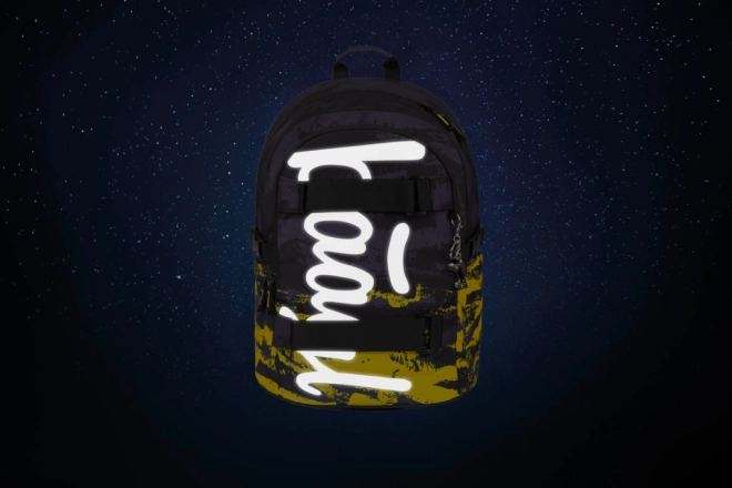Zwei vordere Gurte fixieren das Skateboard sicher. Zuverlässige YKK-Reißverschlüsse und reflektierende Elemente erhöhen Langlebigkeit und Sicherheit.