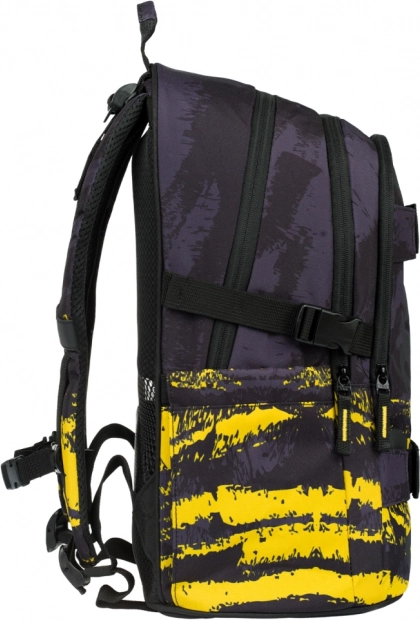 Der Rucksack ist extra leicht (850 g), aus robustem, wasserabweisendem und recyceltem Material und mit reflektierenden Elementen für bessere Sichtbarkeit ausgestattet. Freude machen auch die YKK-Reißverschlüsse, Seitentaschen für Flaschen und zwei vordere Gurte zur Befestigung eines Skateboards. Federmäppchen und Beutel sind im Design und in der Qualität abgestimmt – das Mäppchen hat ein inneres Reißverschlussfach und Platz für den Stundenplan, der Beutel lässt sich dank stabiler Kordeln bequem als Rucksack tragen.