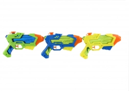 Transparente Teile des Tanks ermöglichen eine schnelle Kontrolle des Wasserstands, während die markante Düse einen präzisen Wasserstrahl gewährleistet. Erhältlich in 3 kräftigen Farben (Mix), die Kinder begeistern und die Unterscheidung beim Spielen mit Freunden erleichtern.