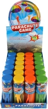 Die transparente zylindrische Röhre schützt das Spielzeug und erleichtert den Transport. Nimm den Fallschirmspringer überallhin mit – auf den Spielplatz, zu den Großeltern oder in den Urlaub.