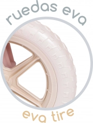 Die Reifen aus EVA-Material sind leicht, leise und pannensicher. Sie bieten hervorragende Bodenhaftung und ersparen das Aufpumpen.