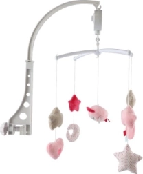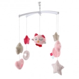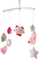 Das rosafarbene Musik-Mobile fürs Kinderbett mit Eule schenkt Babys Ruhe und ein Gefühl von Geborgenheit. Weiche Hängeelemente in Form von Sternchen, Herzchen und Mondsichel schaukeln sanft, während das mechanische Aufziehwerk eine angenehme Melodie abspielt. Der leise Lauf und die freundlich wirkenden Pastellfarben unterstützen eine beruhigende Atmosphäre vor dem Einschlafen.