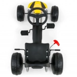 Dank Vorwärts- und Rückwärtsfahrt per Pedale, Handbremse und Schaumrädern mit farbigen Felgen ist die Fahrt auch auf unebenem Untergrund ruhig und komfortabel. Die zweistufige Einstellung des Sitzabstands zum Lenkrad gewährleistet die richtige Position und Komfort für Kinder unterschiedlicher Größe.