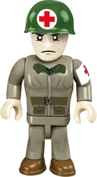 Enthalten ist eine detaillierte Figur eines US‑Armee‑Sanitäters mit grünem Helm und rotem Kreuz – einsatzbereit auf dem Schlachtfeld, um Verwundete zu retten.