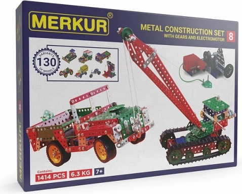 Der legendäre tschechische Baukasten MERKUR 8 für kleine und große Konstrukteure bietet 1405 Teile, 5 Ebenen voller Komponenten und bis zu 130 Modelle nach dem beiliegenden Heft. Enthalten sind Traktorräder, Ketten, Zahn- und Getrieberäder, ein Motor sowie lange Profile – ideal für große Maschinen, Fahrzeuge und Geländemodelle, die Sie dank der Übersetzungen tatsächlich in Bewegung bringen können.