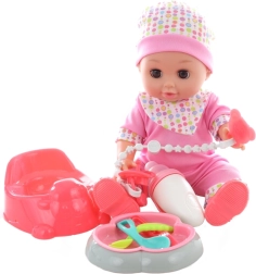 In der Packung finden Sie alles, was für die komplette Pflege nötig ist: Töpfchen, Schühchen, Fläschchen, Teller und weiteres praktisches Zubehör. Die Puppe ist ein tolles Geschenk für Kinder ab 3 Jahren und hilft, Feinmotorik, Empathie und Verantwortungsbewusstsein zu entwickeln.