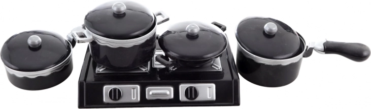 Enthält 3 Töpfe, eine Wokpfanne, 4 Deckel, einen Herd und weiteres Zubehör für realistisches Kochspiel.