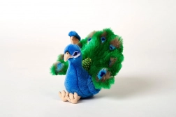 Der kräftig blaue Körper und der grüne Fächer mit „Augen“ fördern die visuelle Wahrnehmung und machen den Pfau zur Zierde jedes Zimmers.