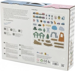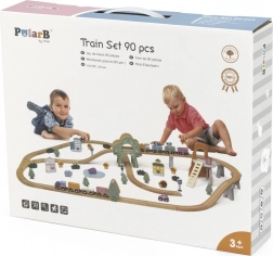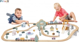 Entdecken Sie eine Welt der Fantasie mit der POLARB-Holzeisenbahn. Das Set umfasst 90 sorgfältig gefertigte Teile: Geraden und Kurven, Erhöhungen und eine Brücke, einen Zug mit Waggons, Verkehrszeichen, Häuser, Fahrzeuge, Tiere, Bäume und Felsen. Dank der einfachen Verbindung lassen sich unzählige Strecken und Szenen bauen, die Kinder immer wieder verändern und erweitern.