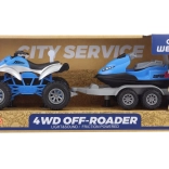Dieses detailreich gestaltete Quad mit Anhänger und Roller bringt Kindern jede Menge Action und Spielideen. Dank der Licht- und Soundeffekte wirkt das Spiel noch realistischer und fesselnder. Der Anhänger zum Transport des Rollers ist inklusive, sodass Kinder eigene Geschichten und Abenteuer erschaffen können.