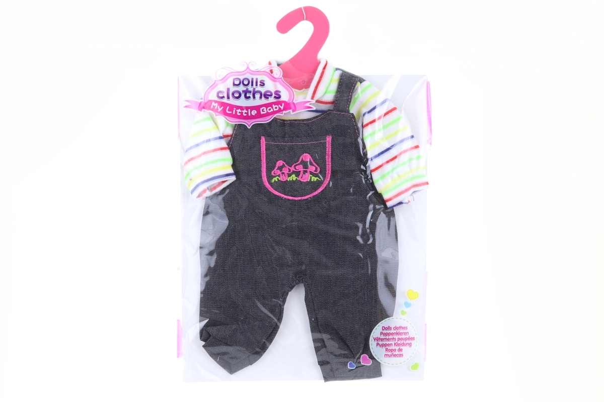 Puppenkleidung für eine Puppe mit einer Größe von ca. 40–45 cm. Maße der Kleidung ca. 23 × 31 cm. Verpackungsmaße ca. 25 × 32 × 1 cm. Material: Polyester. Alter 3+.