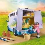 Der Transporter bietet Platz für bis zu zwei Pferde oder Ponys und umfasst eine Fahrerkabine mit zwei Sitzen. Abnehmbare Dachteile ermöglichen einfaches Spielen im Inneren des Fahrzeugs. Über dem geräumigen Kofferraum befinden sich zwei Schlafplätze für den Fall, dass die Reitstunden länger dauern.