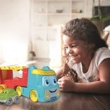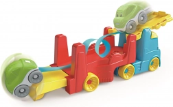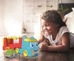 Dieser farbenfrohe Autotransporter von CLEMENTONI begeistert alle kleinen Fahrerinnen und Fahrer. Im Lastermodus transportieren Kinder das Auto und entdecken die Welt realer Fahrzeuge; im Streckenmodus fährt das Fahrzeug die Bahn hinunter, überschlägt sich und macht fröhliche Purzelbäume – Spielspaß und Lernen in einem.