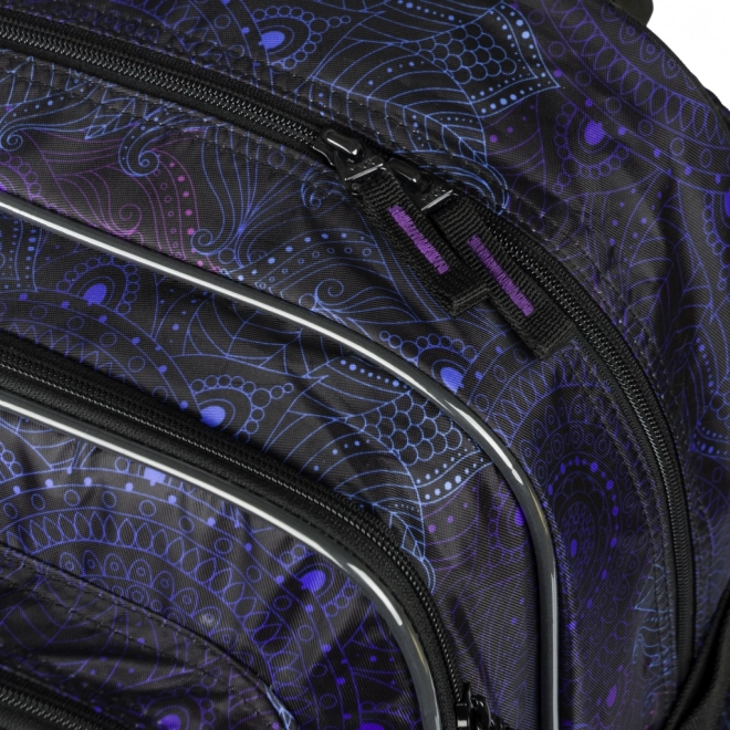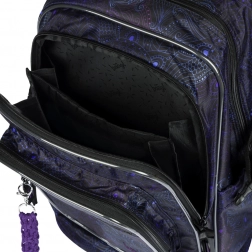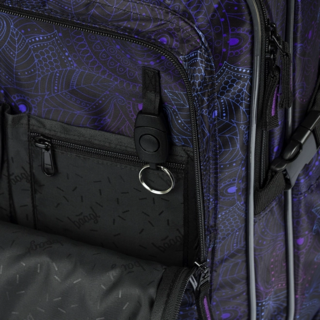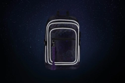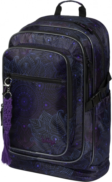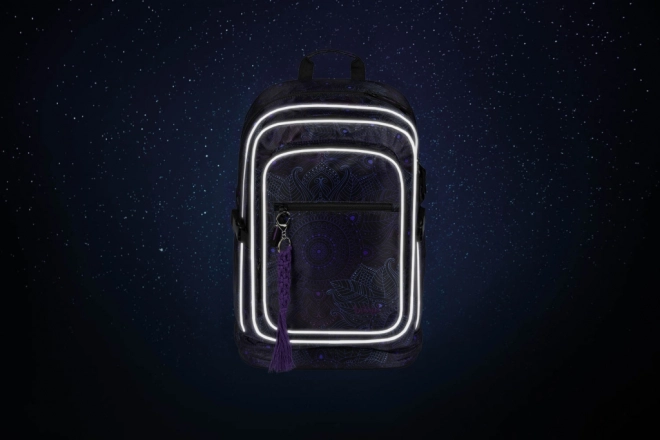 Das Design mit eleganten violett-schwarzen Motiven wird durch einen trendigen Anhänger ergänzt. Der Rucksack bietet ein Volumen von 29 l, eine Traglast von 7 kg und wurde in einem akkreditierten Prüflabor getestet und zertifiziert – er erfüllt somit die Anforderungen an Qualität und Sicherheit.