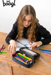 Das Zen-Mäppchen der Marke Baagl ist das ideale Zubehör für Studenten, die Übersichtlichkeit und Qualität schätzen. Es besteht aus robustem Material und alle Reißverschlüsse sind der Marke YKK, was eine lange Lebensdauer gewährleistet. Innen finden Sie eine aufklappbare Innenklappe, eine Reißverschlusstasche und ein Stundenplanfach, die eine effiziente Organisation der Schulmaterialien ermöglichen.
