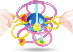 Beim Spielen trainiert das Kind fein- und grobmotorische Fähigkeiten – Greifen, Schütteln, Rollen und Werfen. Kontrastreiche, aber beruhigende Farben fördern das Sehen und helfen, Formen, Farben und Texturen zu unterscheiden. Der Beißring lässt sich leicht mit warmem Wasser reinigen, sodass die Pflege schnell und hygienisch ist.
