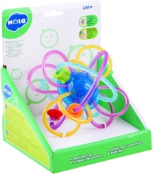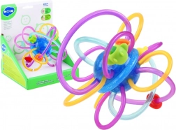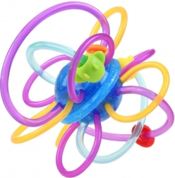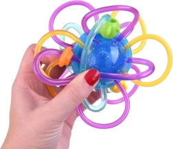Diese kreative „Kugel“ mit verflochtenen Schlaufen und Perlen ist so gestaltet, dass sie die kindlichen Sinne auf natürliche Weise anspricht. Flexible und nachgiebige Schlaufen liegen auch in kleinsten Händchen angenehm, während die glatte, weiche Oberfläche das Zahnfleisch sanft massiert. Verschiebbare Perlen und ein dezentes Rasseln fördern das Hörvermögen und die Konzentration.