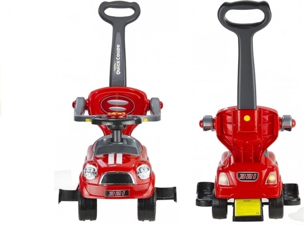 Das rote Rutschauto Coupe bringt Kindern Freude an der Bewegung und Eltern Gelassenheit dank durchdachter Sicherheitsmerkmale. Das Kind kann selbst mit dem Lenkrad steuern, oder Sie übernehmen die Kontrolle mit der praktischen Schiebestange. Die leichte Kunststoffkonstruktion erleichtert die Handhabung und sorgt dafür, dass der kleine Fahrer nicht zu schnell ermüdet.