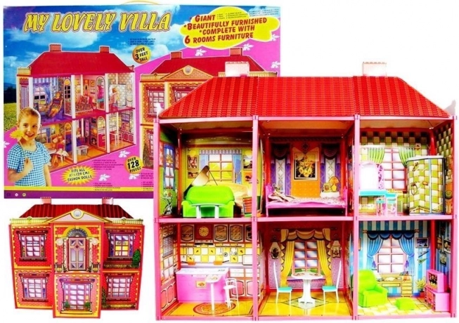 Großes Puppenhaus mit Möbeln – kreative Villa