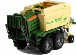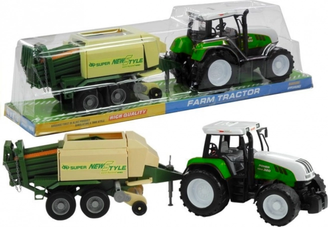 Der Anhänger umfasst bewegliche Teile wie eine ausziehbare Stütze, einen drehbaren Sammel- und Zuführmechanismus sowie seitliche und hintere Klappen zum Öffnen. Dieser spannende Traktor ist in roter und grüner Farbe erhältlich, was die Authentizität und den Spielspaß erhöht.